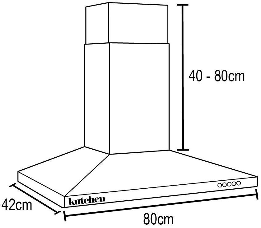 CAMPANA DECORATIVA DE PARED PIRAMIDAL 80 CM KUTCHEN MODELO KCP10280